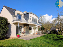 LE CONFORT DU NEUF ET LA VIE CITADINE RÉUNIS – PRESTATIONS DE QUALITÉ L'agence CHT IMMOBILIER est ravie de vous présenter cette magnifique maison individuelle construite en 2020, située au cœur de GUER (56380). Profitez d'un cadre de vie idéal où tout se fait à pied : écoles, commerces, pôle médical et pharmacie sont à deux pas. Cette propriété, aux finitions soignées et à la performance énergétique optimale, offre un confort de vie moderne et clé en main. Le rez-de-chaussée est composé d'une entrée fonctionnelle avec placard intégré donnant sur une vaste pièce de vie baignée de lumière d'environ 56 m², comprenant un salon-séjour spacieux et une cuisine moderne, une buanderie, WC séparé et une suite parentale de plain-pied : comprenant une chambre, un dressing privatif et une salle d'eau élégante. À l'étage vous découvrirez un palier desservant trois belles chambres, une salle de bain complète équipée d'une baignoire et d'une douche et un second WC séparé. En dépendance cette propriété s'accompagne d'un garage attenant d'environ 28 m² avec accès direct à la maison et une terrasse exposée Sud et Ouest. Cette maison se distingue par son excellent confort thermique et ses équipements de pointe : Chauffage : Pompe à chaleur (PAC) haute performance assurant le chauffage et la production d'eau chaude. Confort : Plancher chauffant sur tout le rez-de-chaussée et radiateurs à l'étage. Terrain : Parcelle d'environ 500 m², idéale pour profiter d'un extérieur sans trop d'entretien. Assainissement : Raccordement conforme au tout-à-l'égout. LES POINTS FORTS :Construction 2020 : Normes récentes, isolation performante et garanties décennales. Vie de plain-pied : Suite parentale complète au rez-de-chaussée. Volume : Une pièce de vie de 56 m² et 4 chambres au total. Emplacement : L'hyper-centre de Guer avec toutes ses commodités accessibles immédiatement. Une opportunité rare de devenir propriétaire d'une maison récente sans les délais de construction ! Pour visiter ce bien d'exception, contactez vite l'agence CHT IMMOBILIER au 02 99 06 98 97. Les informations sur les risques auxquels ce bien est exposé sont disponibles sur le site Géorisques : "www.georisques.gouv.fr". Vous avez un projet immobilier sur le secteur de Brocéliande ? Pour vendre, acheter ou louer une maison à Plélan le Grand, Guer, Beignon, Saint Malo de Beignon, Porcaro, Augan, Monteneuf, Concoret,Campénéac, Paimpont, Saint Péran, Iffendic, Monterfil, Montfort sur Meu, Saint Thurial, Bovel, Loutehel, Val d'Anast, Maxent, Treffendel, Saint Malon sur Mel, Baulon... contactez nous. Sept conseillers à votre service, trois vitrines à Plélan le grand, Saint Cyr Coëtquidan et Beignon et publication de nos annonces sur plus de 80 sites internet. Plus d'offres sur cht-immobilier.com
